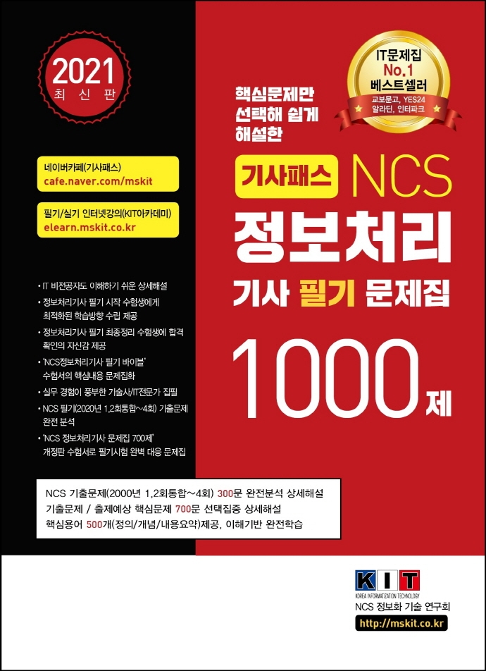 다들 시나공, 수제비로 공부를 했었는데 시간이 별로 없으면 기출문제집이 더 좋다고 해서 NCS 정보처리 기사 필기 문제집 1000제를 샀다.