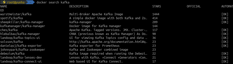 docker search 명령어를 통해 docker 이미지 파일을 검색합니다.