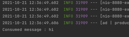 message 생성/소비에 대한 로그도 제대로 출력되는 것을 확인 할 수 있습니다.