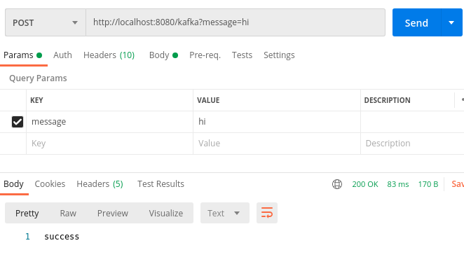 이제 Postman을 사용하여 메시지를 발송하겠습니다.