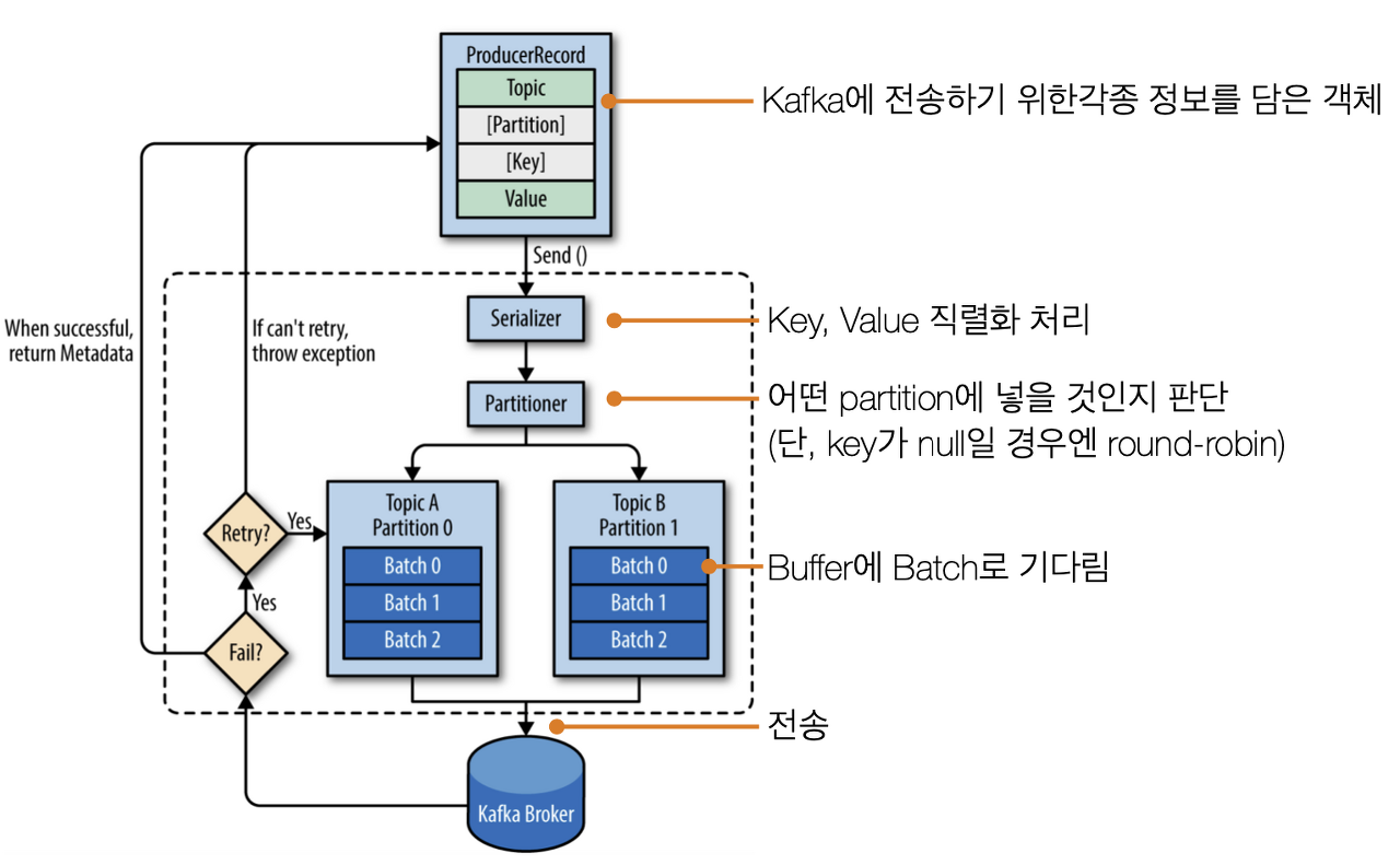 Producer를 통해 Kafka에 message를 send 하기 위해서는 KafkaProducer 인스턴스를 사용하여 send() 메서드를 호출해야합니다.