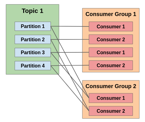 이러한 방식은 같은 Topic의 메세지를 다수의 애플리케이션이 읽어야 하는 경우 매우 유용하게 사용할 수 있습니다.