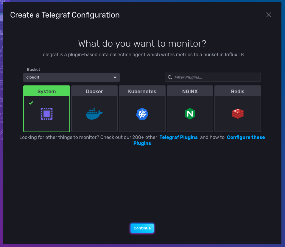 Data > Telegraf > Create Configuration