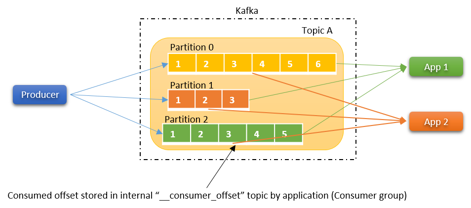 컨슈머 오프셋을 통해 컨슈머 애플리케이션이 중단되었다가 다시 시작될 경우 자신이 어디서부터 메시지를 읽어야 하는지 알 수 있습니다.