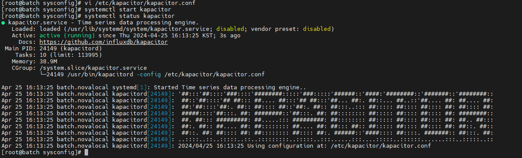 $ systemctl start kapacitor