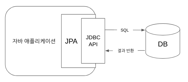개발자가 JPA에게 명령을 하면 JPA가 JDBC API를 사용하여 SQL을 호출하고 결과를 반환하여 동작한다