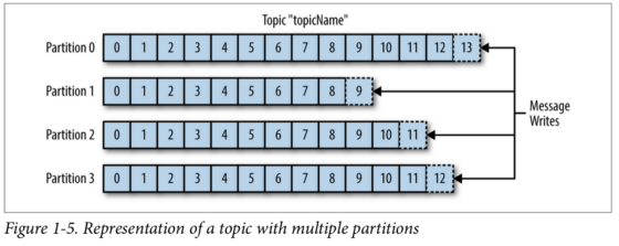 메시지는 topic으로 분류되고, topic은 여러 개의 partition으로 나눠 질 수 있습니다. 하나의 topic은 1개 이상의 partition으로 구성되어 있습니다.